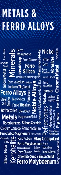 Foundry Raw Material Suppliers, Ferro Alloys, Base Metals, Refractories, Castables, Steel Mill Supplies, Phenolic Resins, Scrap Merchants and Industrial Chemical Traders